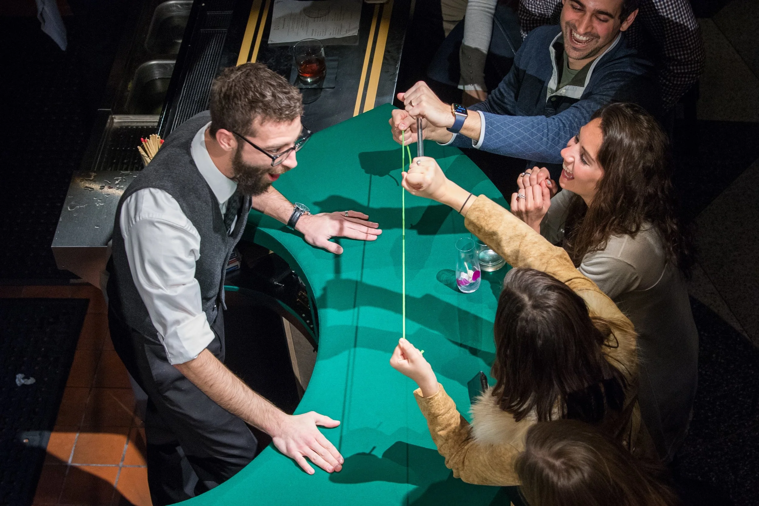 Bar Magic is one of the cornerstones of Chicago-style Magic. Fast, funny, personality-driven, and highly interactive, the Drink & Be Fooled package creates the ideal mood for an event full of laughter and amazement. Specially designed for an optimal close-up magic experience, our Performance Bar allows your guests to become a part of the show. This Fooled package guarantees a uniquely Chicago experience and reminds your guests that it's fun to be fooled.
